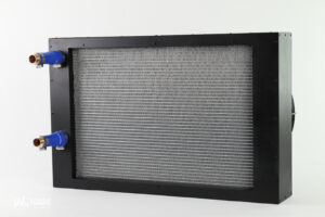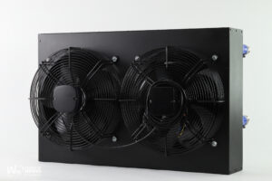 Внешний вид и производитель вентиляторов может отличаться от фотографии. В стандартном исполнении Драйкулер Airflow2+ производится с двумя вентиляторами на 220В, что позволяет убрать “писк” электродвигателя как в случае применения частотного преобразователя для регулировки скорости вращения вентилятора на 380В.