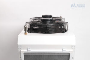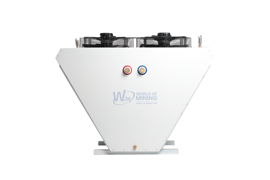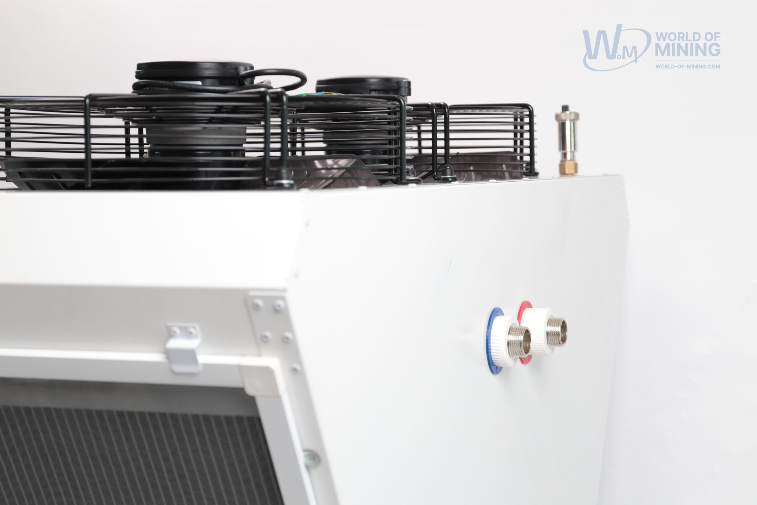 Внешний вид и производитель вентиляторов может отличаться от фотографии. В стандартном исполнении Драйкулер AirV производится с двумя вентиляторами на 220В, что позволяет убрать “писк” электродвигателя как в случае применения частотного преобразователя для регулировки скорости вращения вентилятора на 380В.