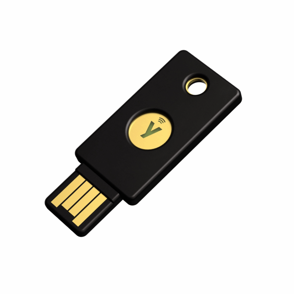 YubiKey 5 NFC – одна из самых популярных моделей аппаратного ключа аутентификации. Типы подключения USB-A и NFC отлично подойдут как для использования с ПК, так и со смартфоном.